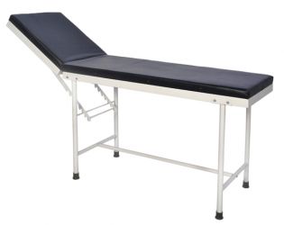MS fabricated structure, Two section upholstered top. Head section adjustable on ratchet. Mounted on four stumped legs with rubber shoes. Pre treated and epoxy powder coated .(1830 x 610 x 760)